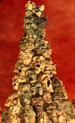 The Pillar of Skulls, located in Baator, Avernus, is a large column of skulls and writhing putrid flesh. The heads once belonged to those who possessed knowledge, but chose to tell lies. These lies led to the deaths of others or otherwise caused enough harm to earn this punishment.