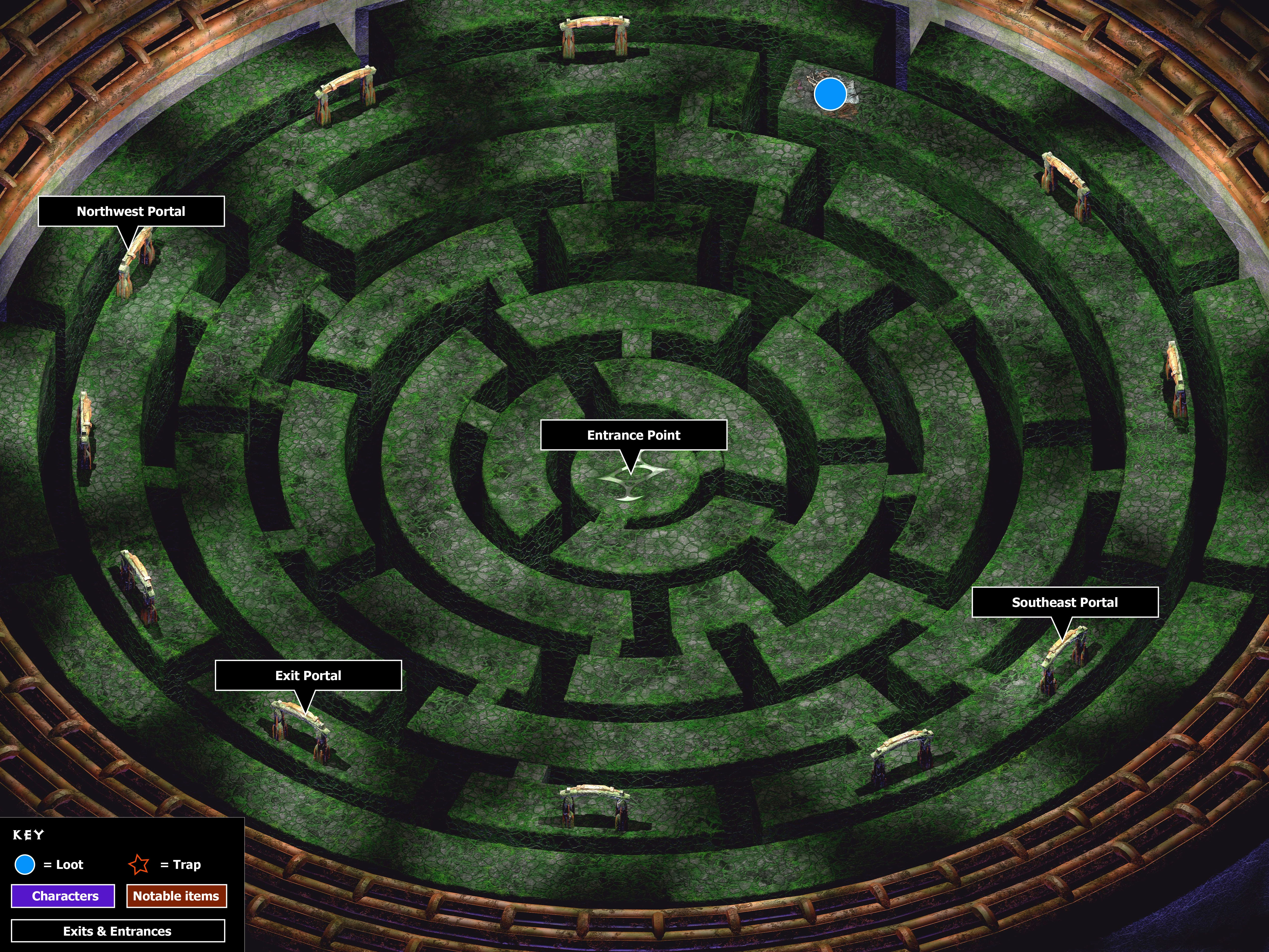 The key to leaving the maze is hidden within the Bone-Framed Journal. Each portal lining the maze's edges is across from another portal – save one. This is the portal that must be reached in order to leave the maze. Unfortunately, there is no way to reach it by foot.